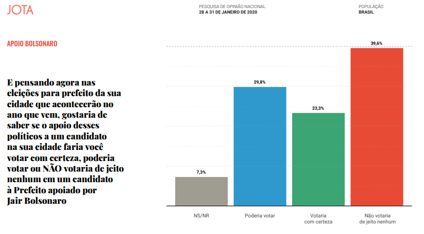 A pesquisa do JOTA já mostrou que Bolsonaro iniciou o segundo ano de mandato com taxa de aprovação estabilizada, com ligeiro viés de alta, com 34% de avaliações bom/ótimo.