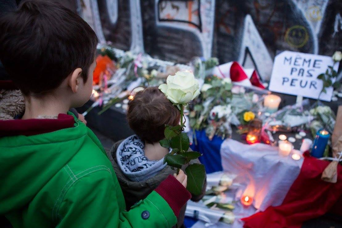 A praça da République estava cheia de pessoas querendo homenagear as vítimas, apesar da proibição de manifestações. Era bonito. Muita emoção e dignidade. Uma certa normalidade estava voltando aos poucos, como se os parisiense quisessem mostrar que não estavam intimidados.